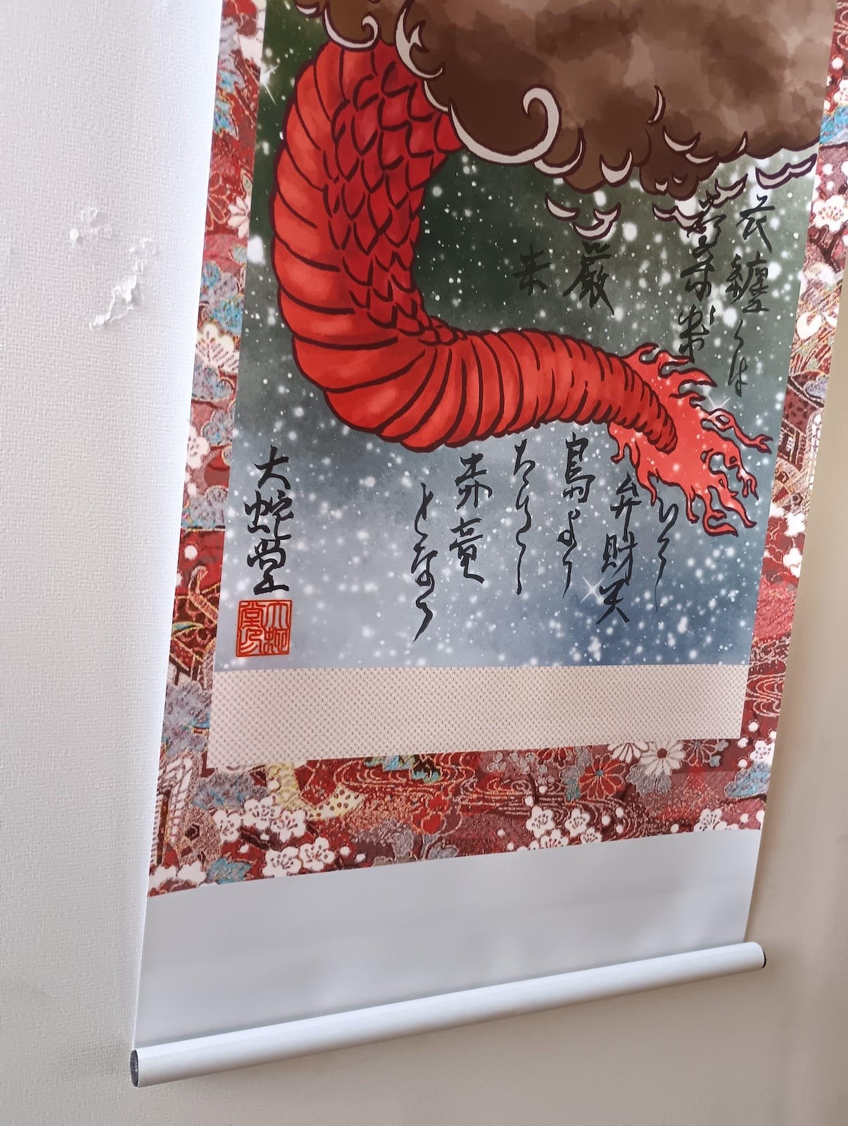 「衣纏うはやなぎ色 弁財天 厳島より来たりて赤竜となり」