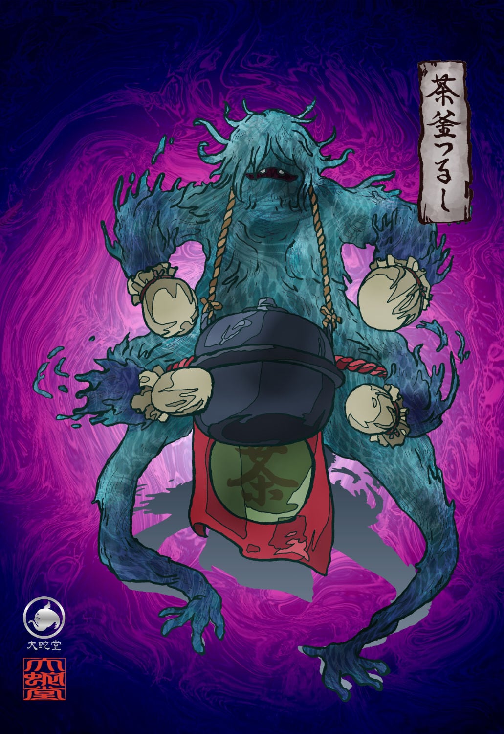 茶釜つるしは、茶釜を首につるして、ゴアン、ゴアン、異様な音をたてる怪物だといわれた。