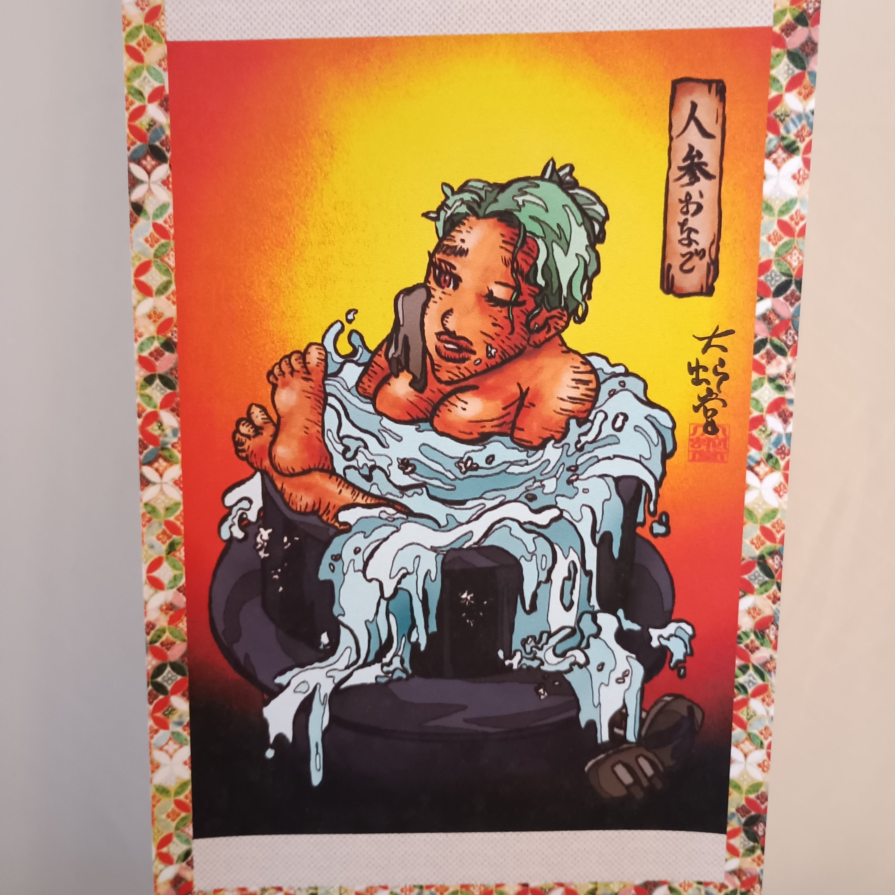 中サイズ以上の掛け軸と異なり、1点ものではありません。サインは直筆です。