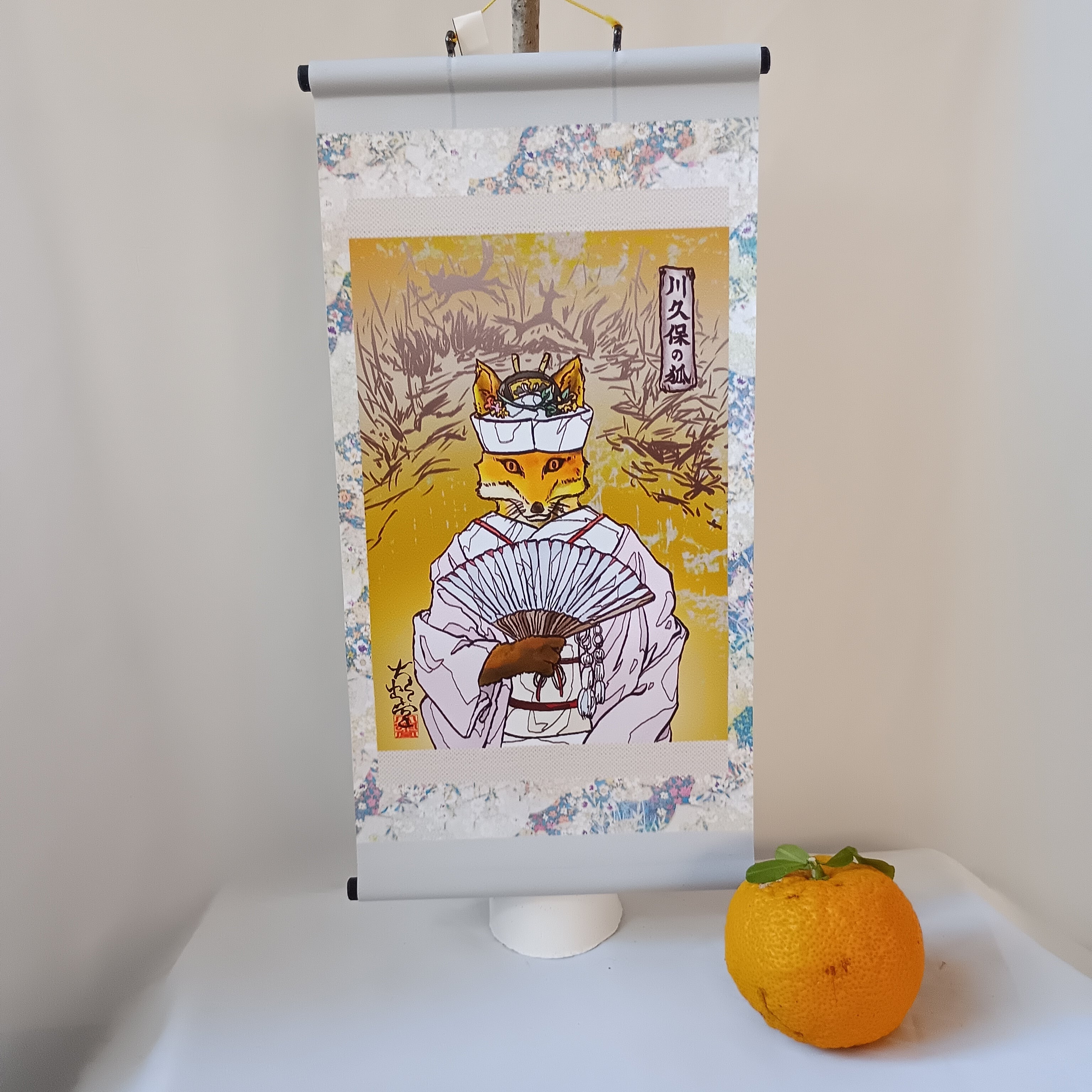 【ミニ掛け軸】妖怪478・川久保の狐(山梨・中央市)