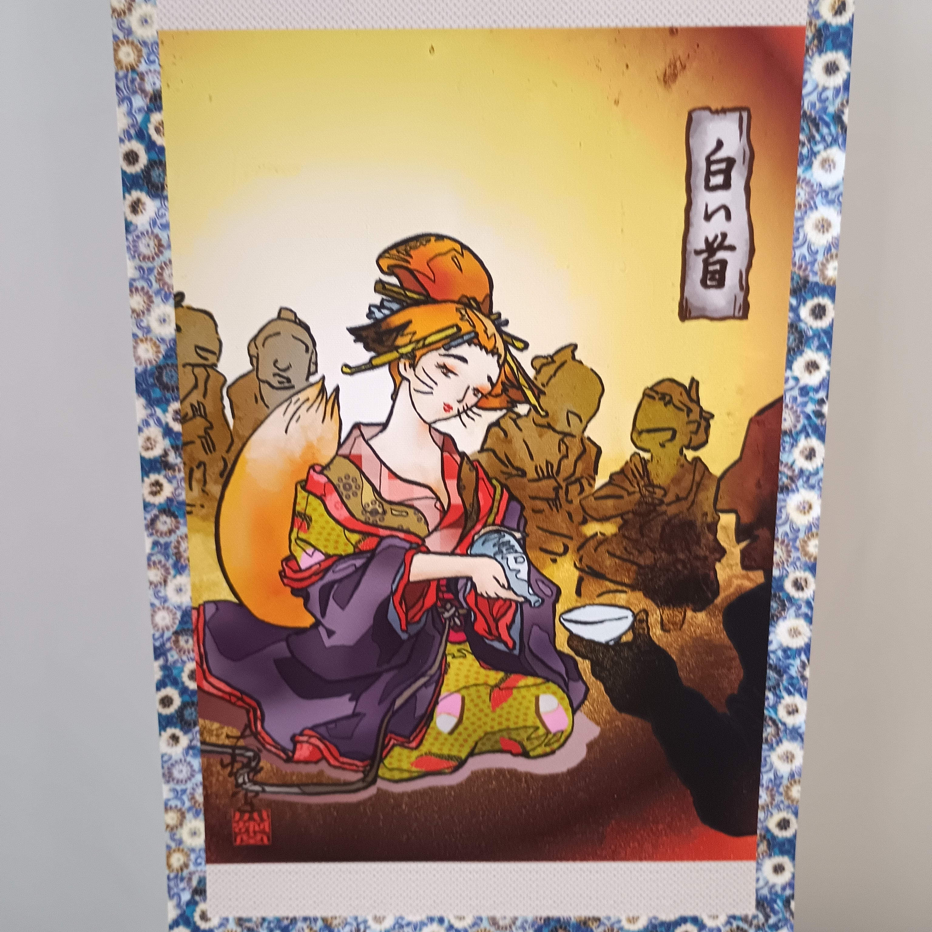 中サイズ以上の掛け軸と異なり、1点ものではありません。サインは直筆です。