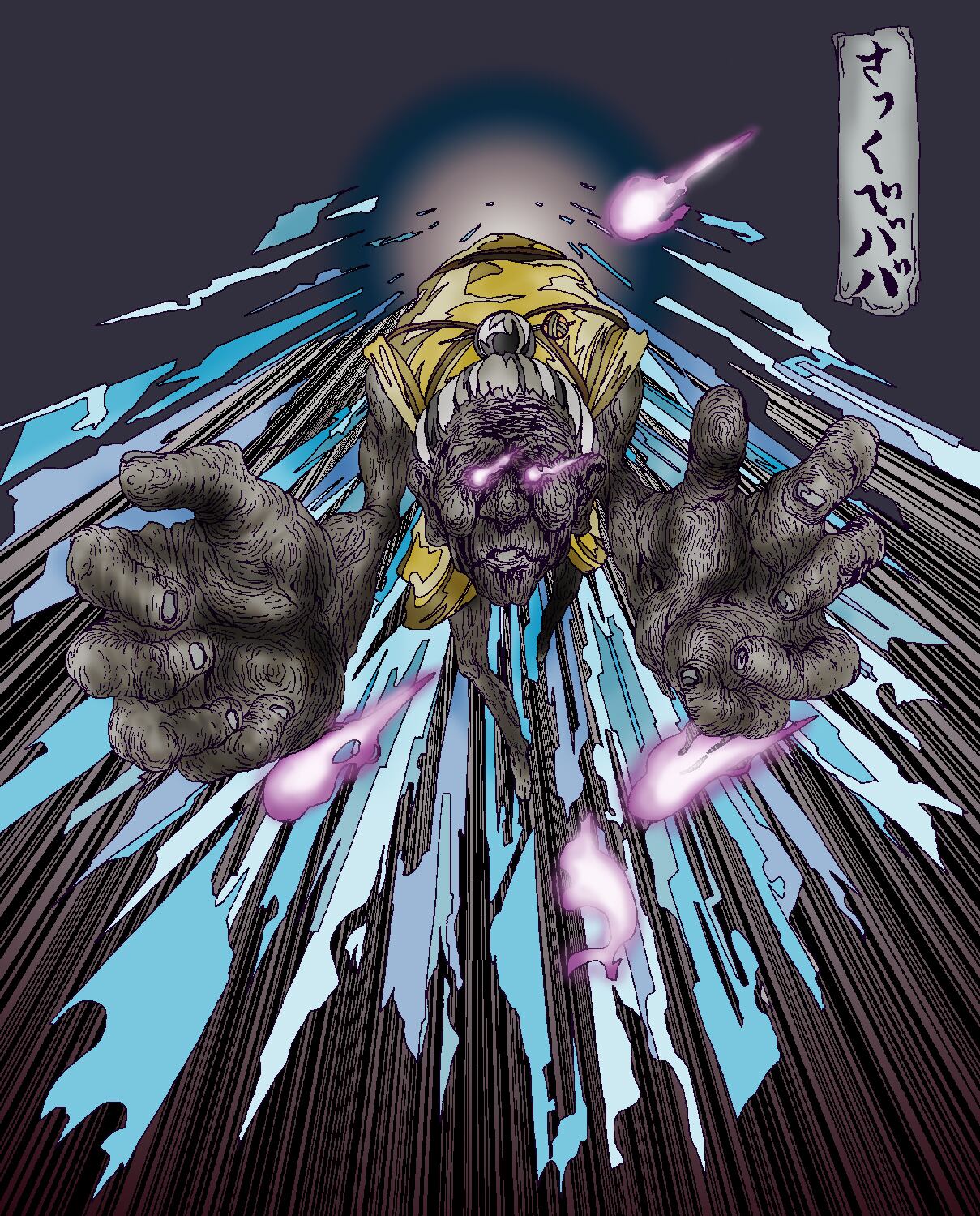 Story of Tajiri town, Miyagi prefecture. The old woman has 30 times the power of seeing, listening, and smelling than ordinary people. She usually lives in the mountains, but runs as fast as the wind on the road early in the evening, kidnaps children who do not listen to her parents, puts them on the fireside and puts scars on her face .