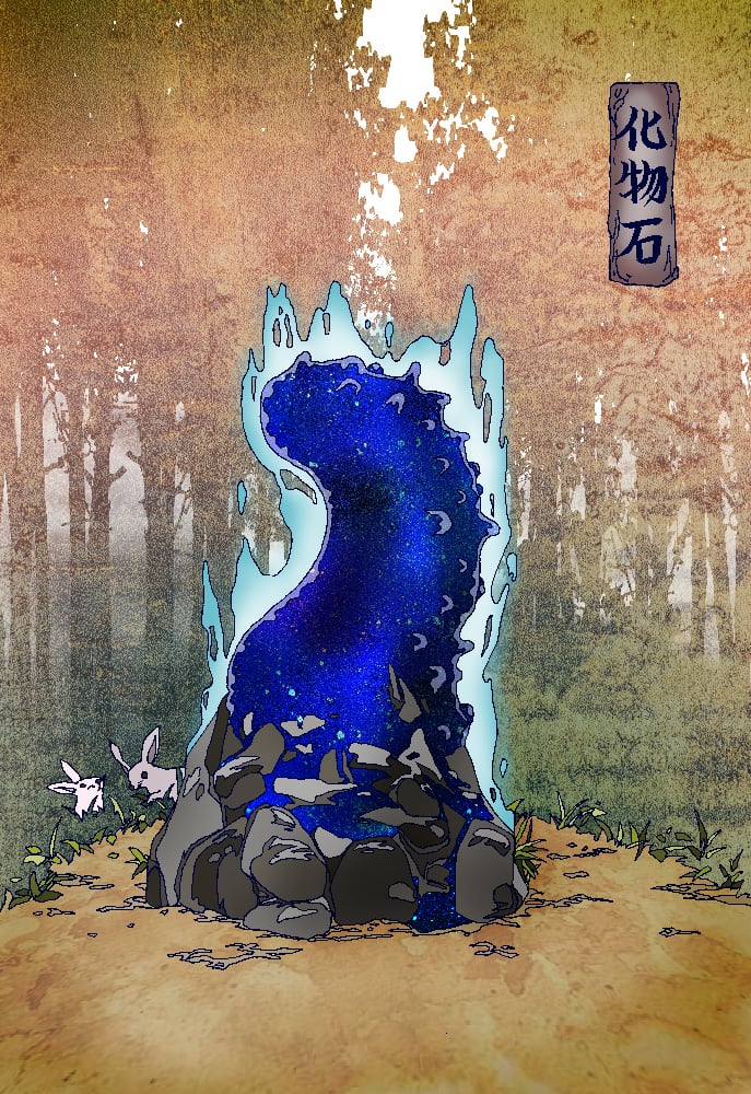 There was a big stone called Bakamonoishi. The stone turned into a sea cucumber and threatened people. When the strong man slashed, the stone broke into two pieces and became immutable.