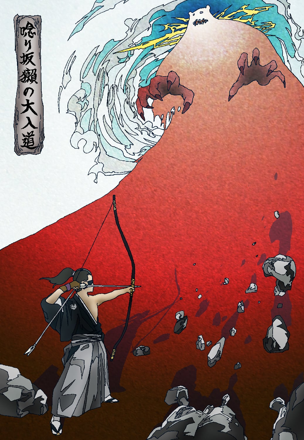 Masamune headed for the slope. The giant has become twice as big as usual. However, Masamune is not afraid. He shot an arrow at the feet of the giant. The giant screamed and returned to its original rock form. After that, when they searched around, there was a large otter whose foot was shot with an arrow. Since then, this slope has come to be called a Unerizaka(roaring slope).