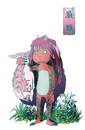 猿候の子供は頭に皿があり、歯が1枚生えて生まれてくる。