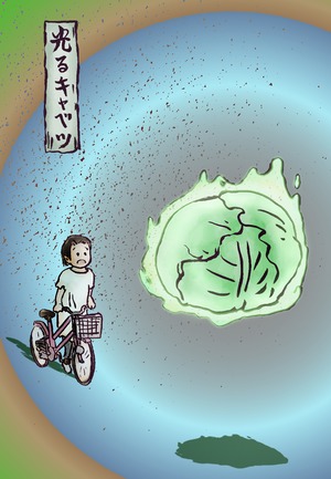 What was witnessed in Kofu City, Yamanashi Prefecture. Yasuki Shindo, a fourth-grade elementary school student at the time, was walking home on his bicycle when he saw a glowing cabbage floating in front of him near the public hall. The size is the same as a normal cabbage, but the design was deformed like a toy.
