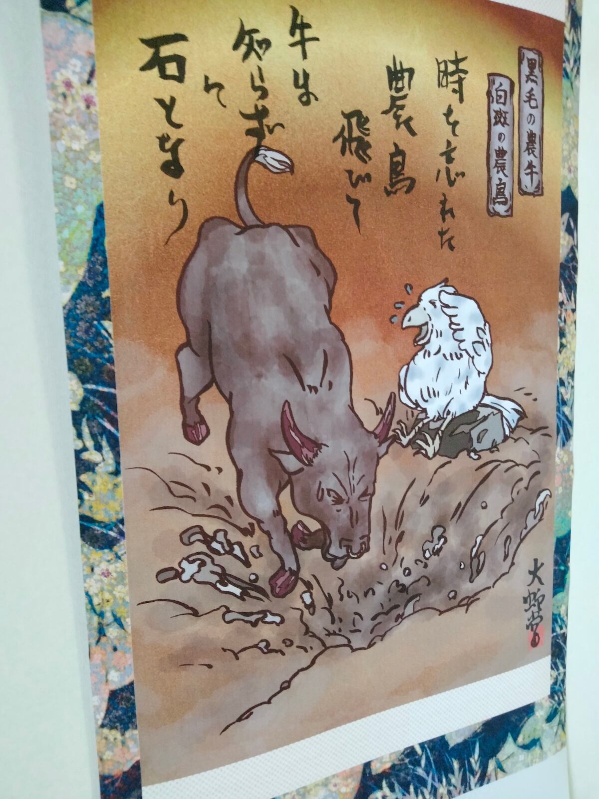 「時を忘れた農鳥飛びて 牛は知らずに石となり」