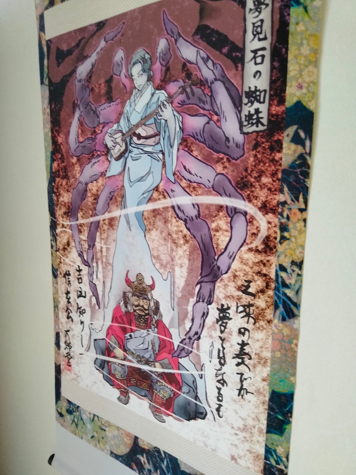 私は三味線弾きだから一曲かなでようと、持参の袋の中から数多の寄せ木を取り出して組み始め、組み立て終わり弾き始めようとするときに目が覚めて、みれば身体中が蜘蛛の糸で巻かれていた。