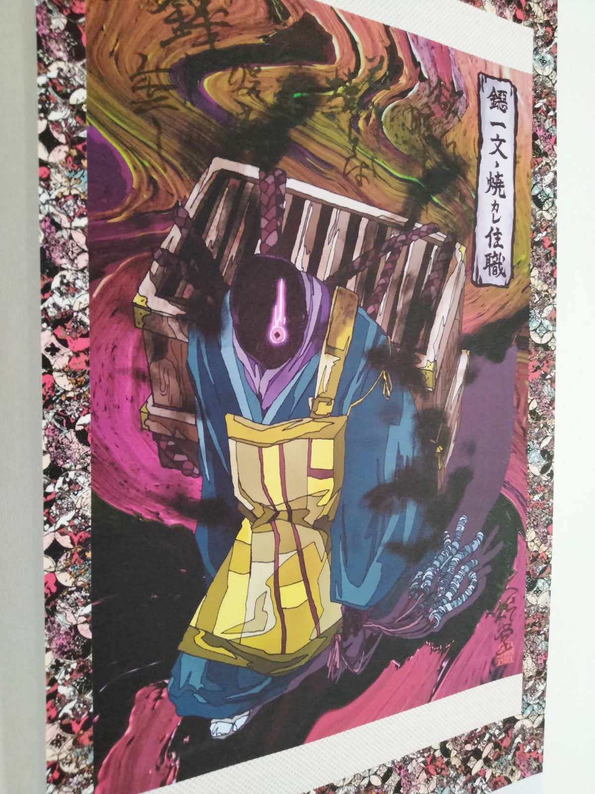 『鐚一文・焼カレ住職』はこの展示に参加するにあたり大蛇堂がイラスト・話ともに創作したものであり、この作品は大怪店が閉店する『最後の大怪展』のためにリニューアル制作したものです。