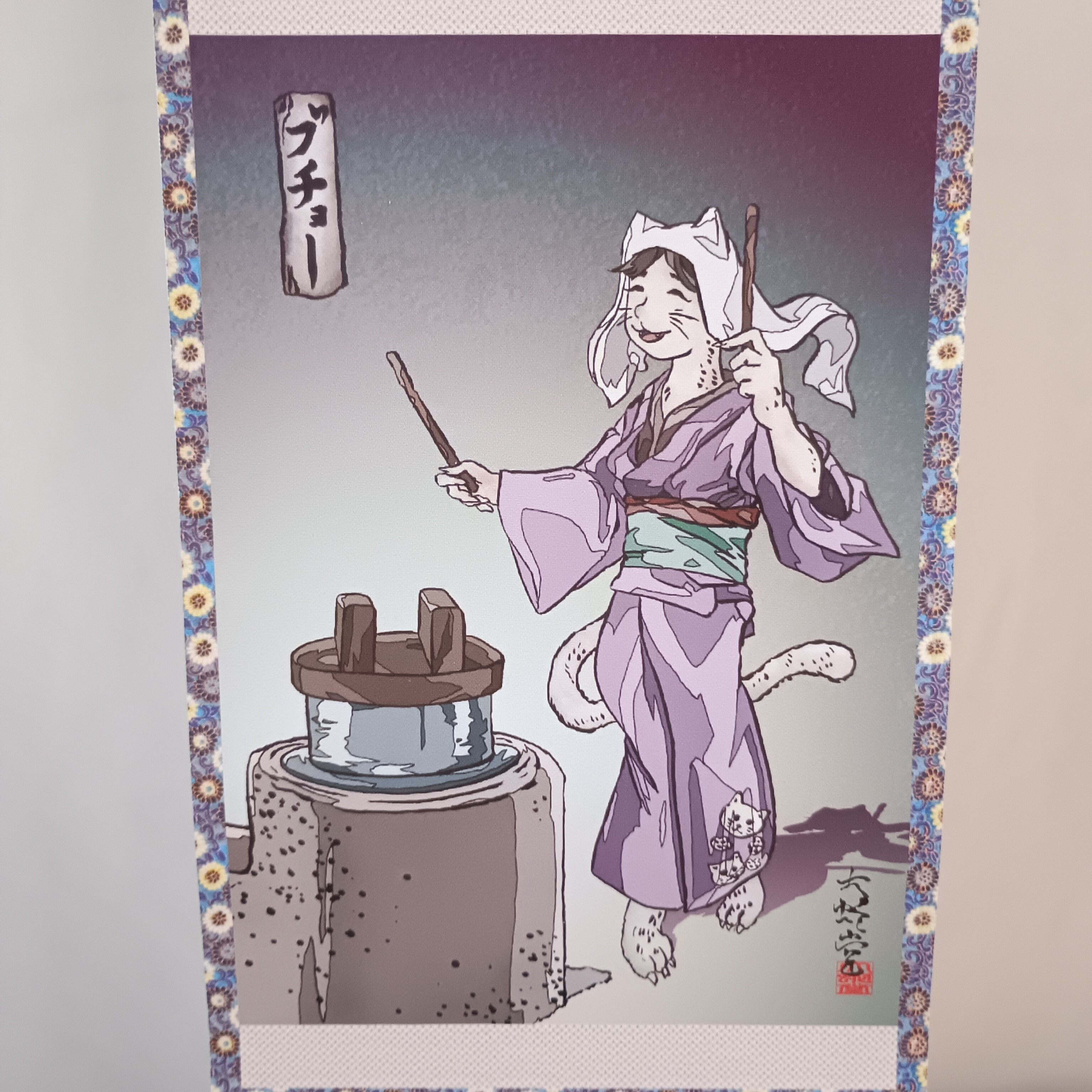 中サイズ以上の掛け軸と異なり、1点ものではありません。サインは直筆です。