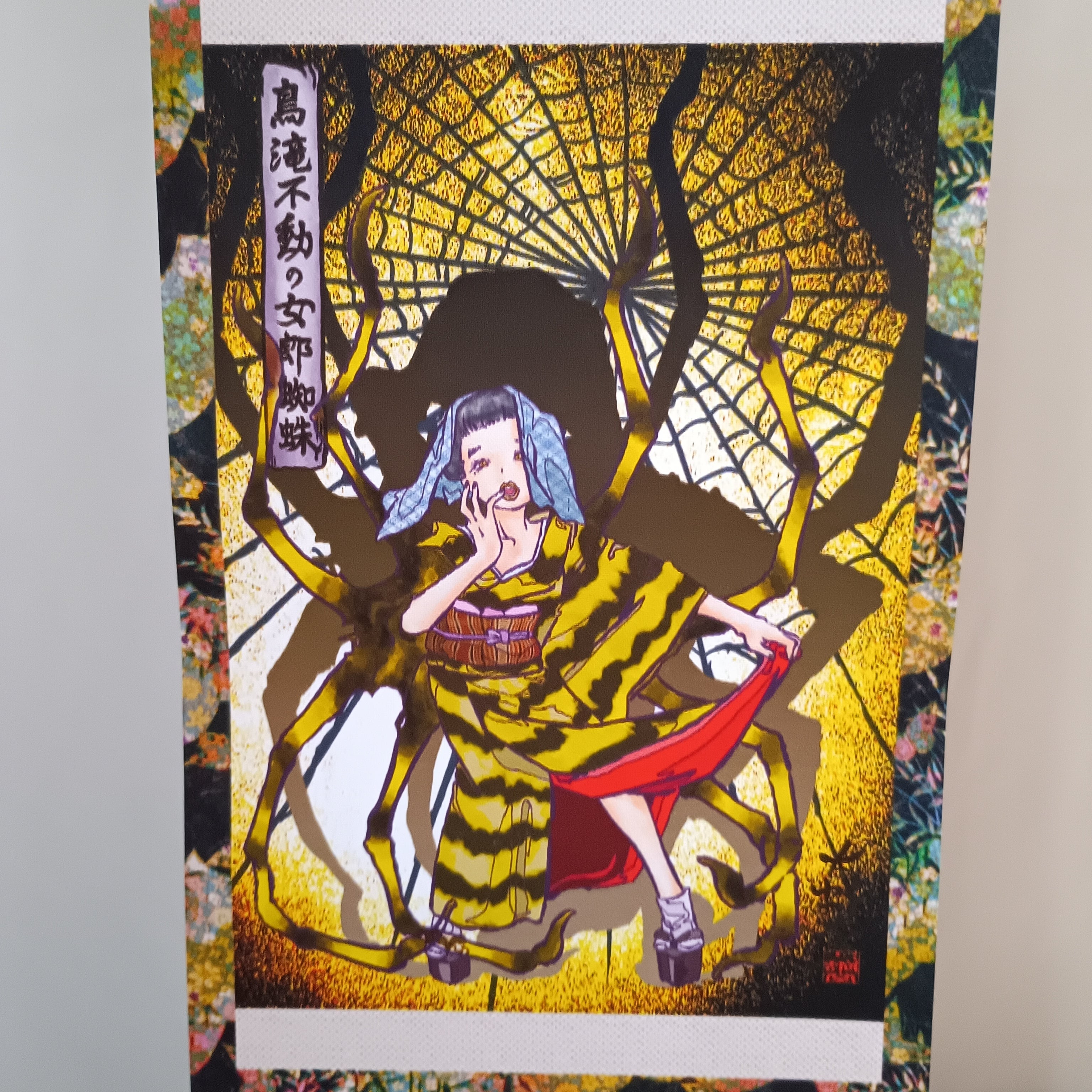 【ミニ掛け軸】妖怪577・鳥滝不動の女郎蜘蛛(宮城・仙台市青葉区)