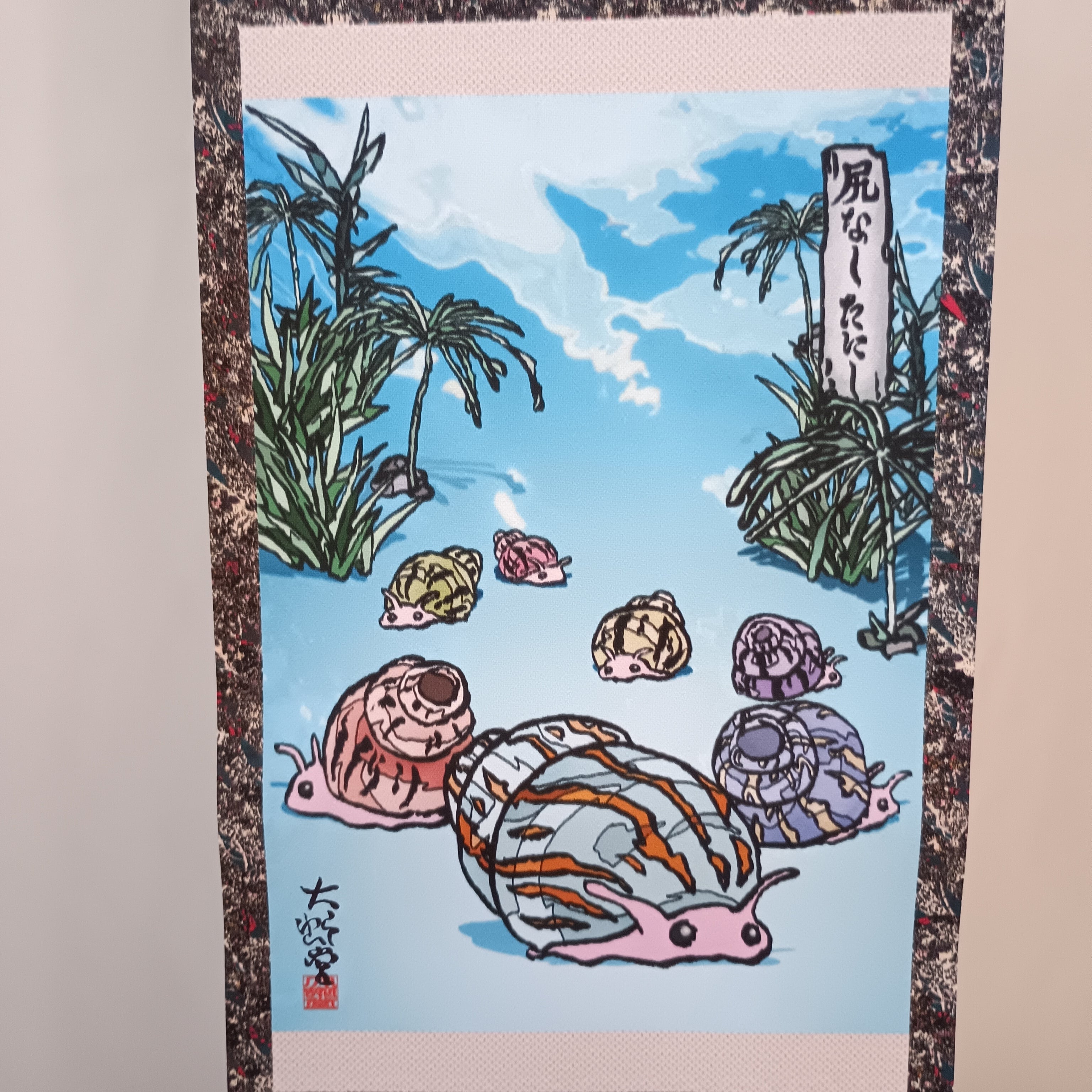 中サイズ以上の掛け軸と異なり、1点ものではありません。サインは直筆です。