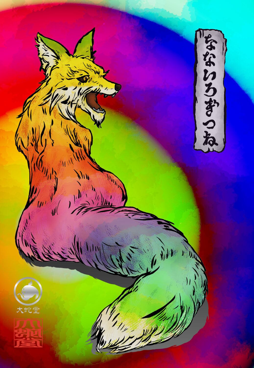 【ミニ掛け軸】妖妖怪526・なないろぎつね(静岡・森町)